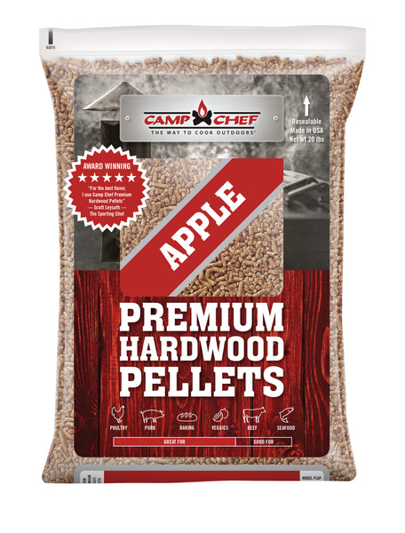 Camp Chef Premium Hardwood Pellets offer several flavor profiles for high grade beef, chicken, pork and fish. Also great with vegetables or baked goods.